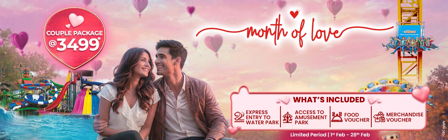 It’s February! Celebrate “The Month of Love” with your better half only at Wet’nJoy Lonavala. Pick any day of the month and enjoy a full day of magic & masti!